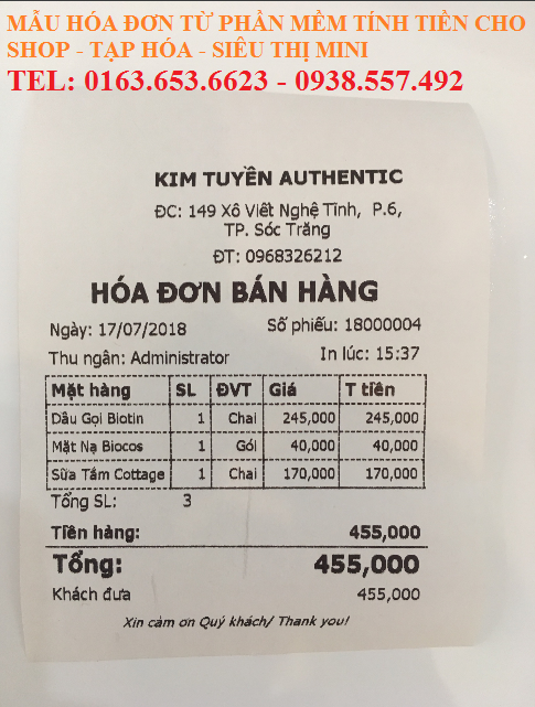 Combo máy tính tiền cho cửa hàng túi xách thời trang tại Cà Mau